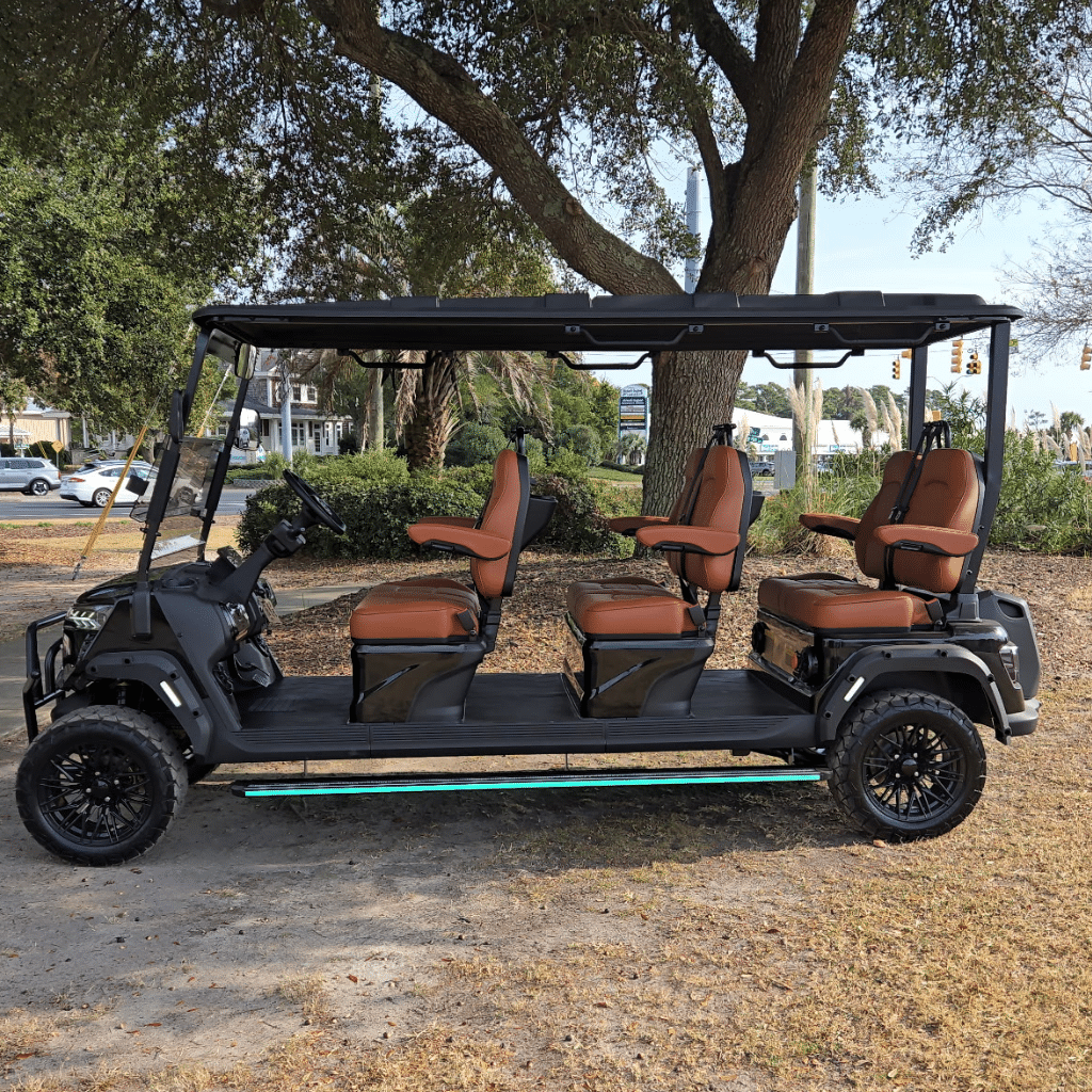 The 2026 Edge EV Phantom is a 6-passenger, forward-facing street legal golf cart built for comfort, style, and family fun. It features smooth independent suspension, Apple CarPlay/Android Auto, backup camera, bright LED light-up sidesteps, underglow, powerful speakers, and 2 USB connections to keep everyone connected. With golf ball holders, two key-entry glove boxes, and an XL rear trunk with tons of storage, this street legal golf cart is perfect for cruising the neighborhood, downtown, or the beach.