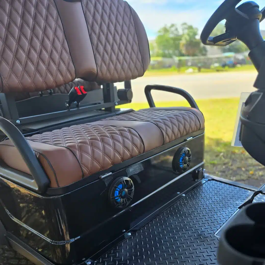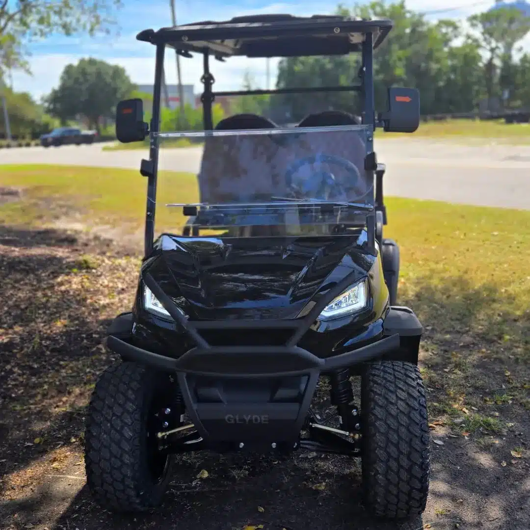 Introducing the EdgeEV Four Passenger Glyde; a rugged golf car. Premium U.S.-built cart that combines off-road style with advanced tech. With Bluetooth, built-in speakers, and a digital display, it keeps you connected on the move. Enjoy a smooth, car-like ride thanks to hydraulic brakes and an independent suspension system. Powered by a hassle-free 52V lithium battery, it delivers up to 50 miles of range on a single charge. Perfect for the neighborhood, beach, or trail.